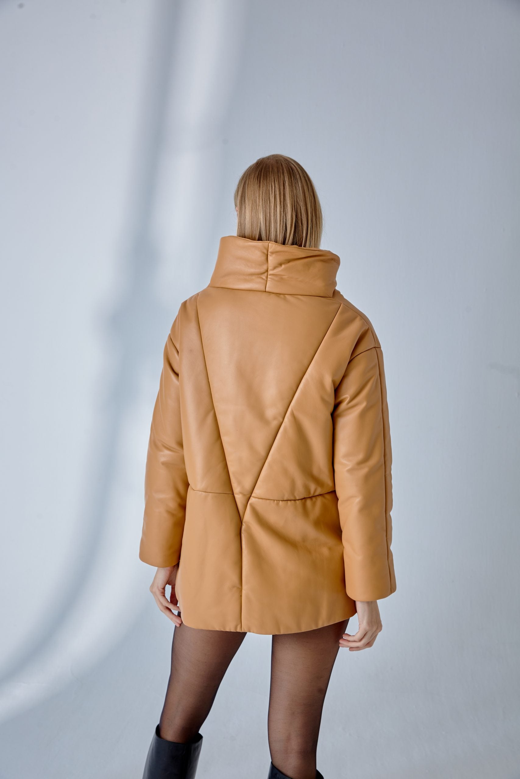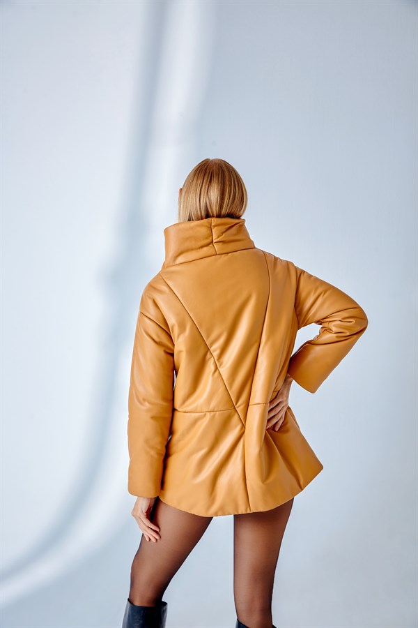 Dropped Shoulder Leather Jacket – Camel