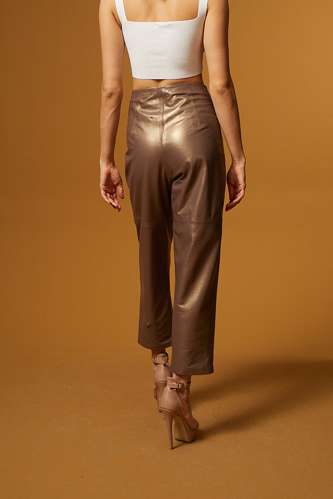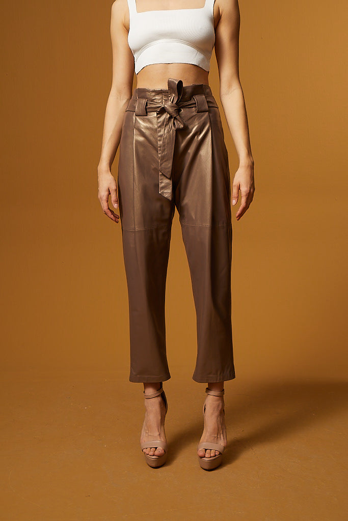 High Waist Leather Tapered Pants – Bronze