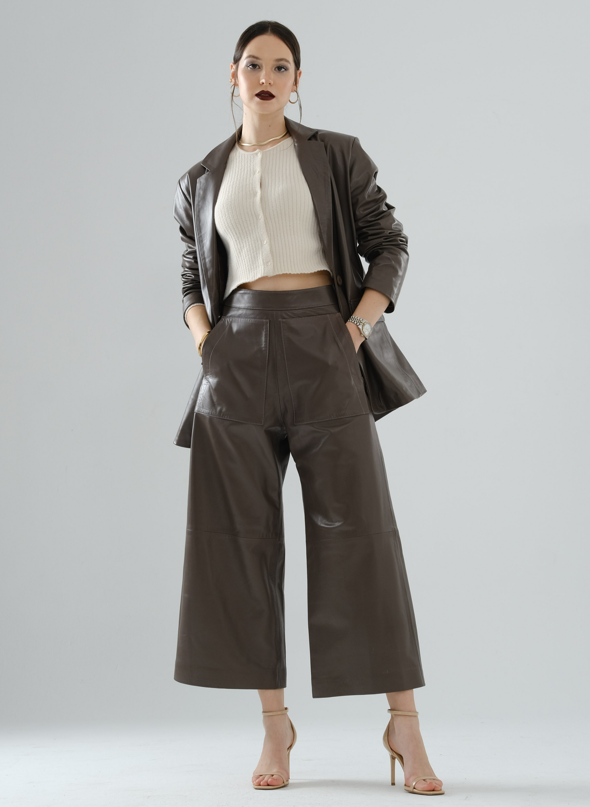 Loose-Fit Large Pocket Short Leather Pants – Mocha