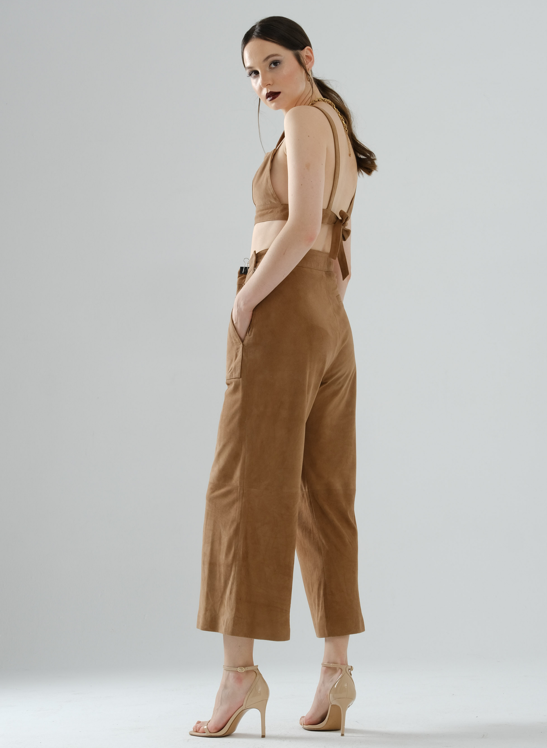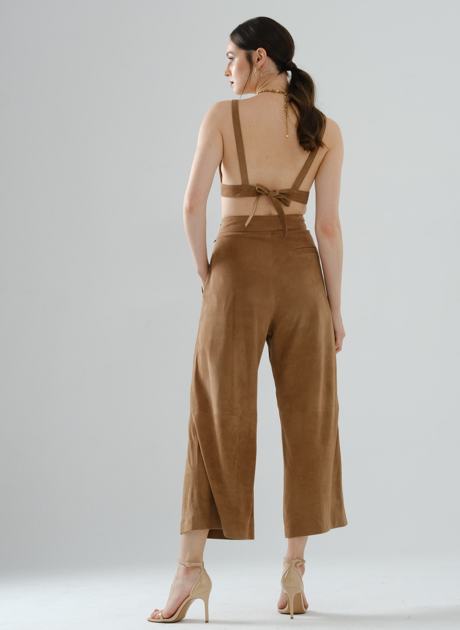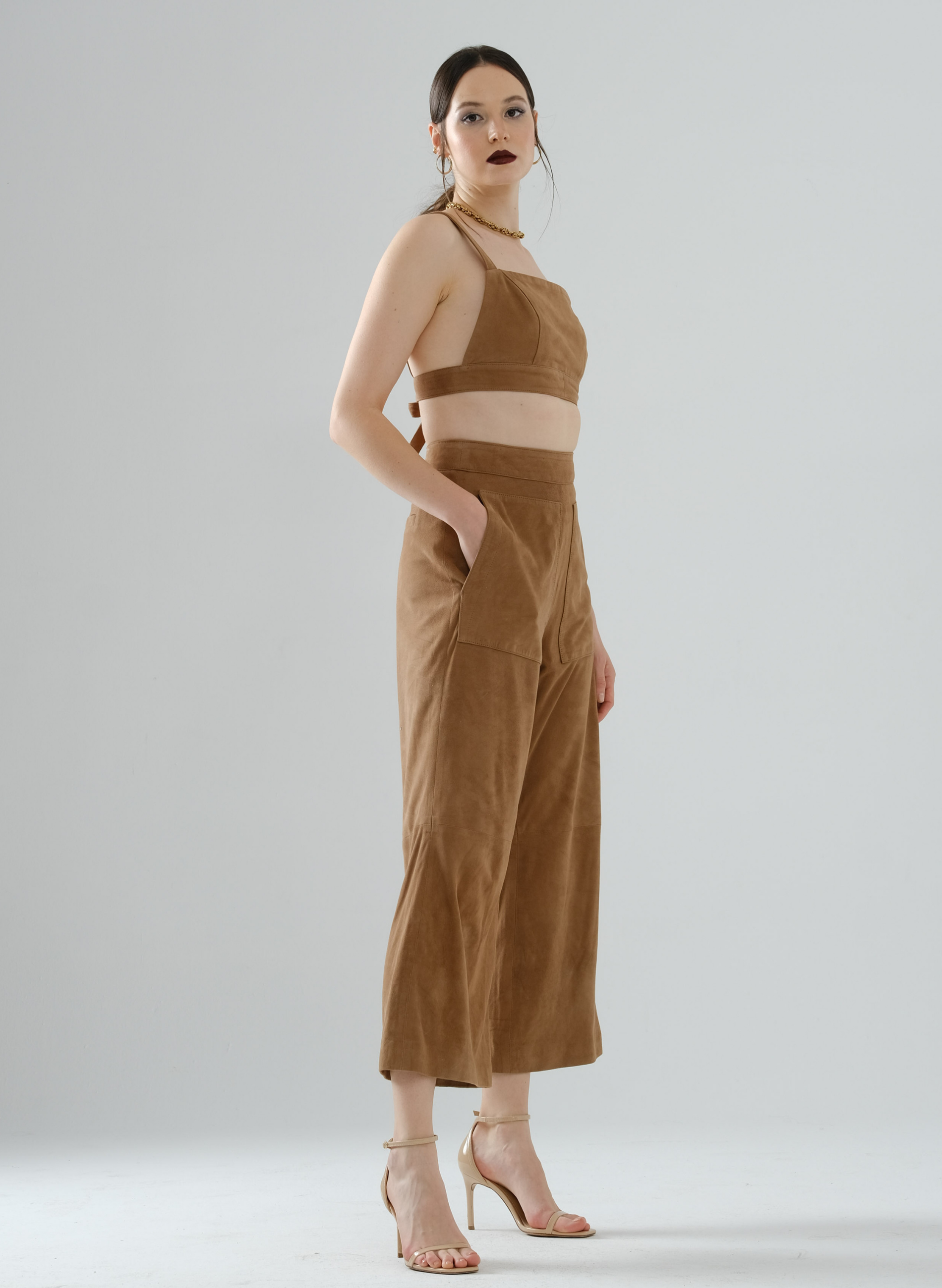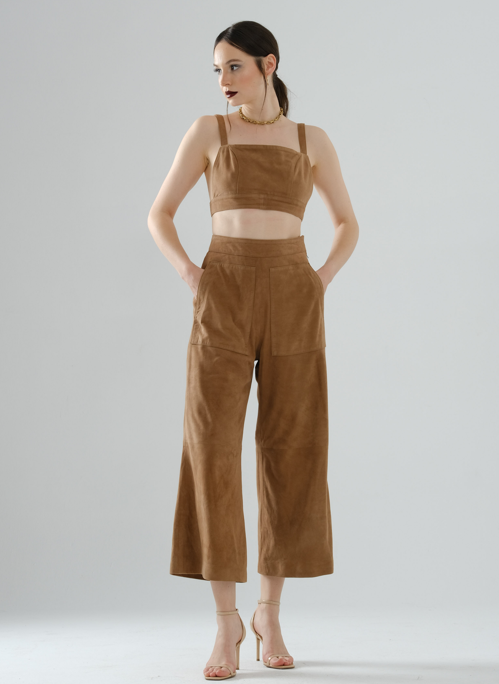 Loose-Fit Large Pocket Short Suede Pants – Brown