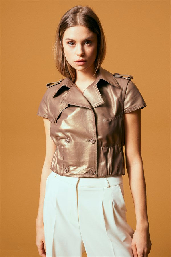 Short Leather Trench - Bronze