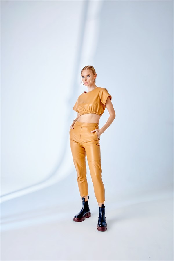 Straight Cut Leather Pants – Camel