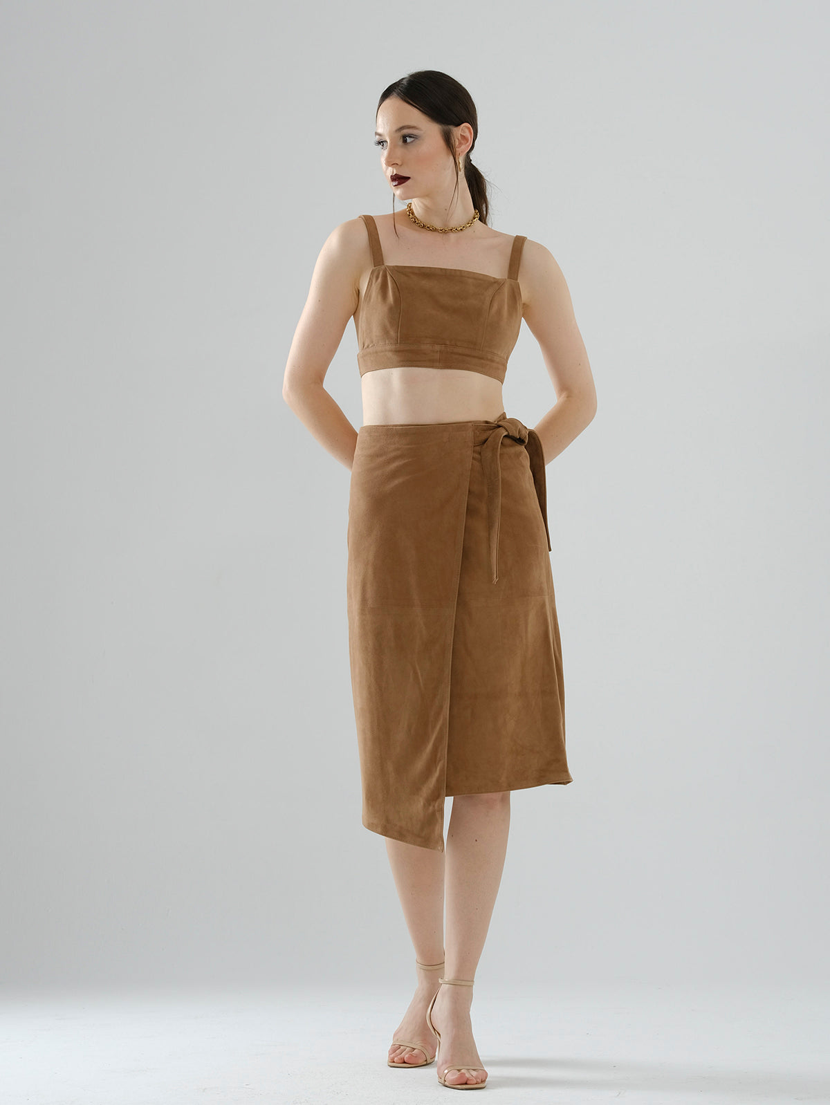 Snap-Button Suede Skirt, Fits 3 Sizes