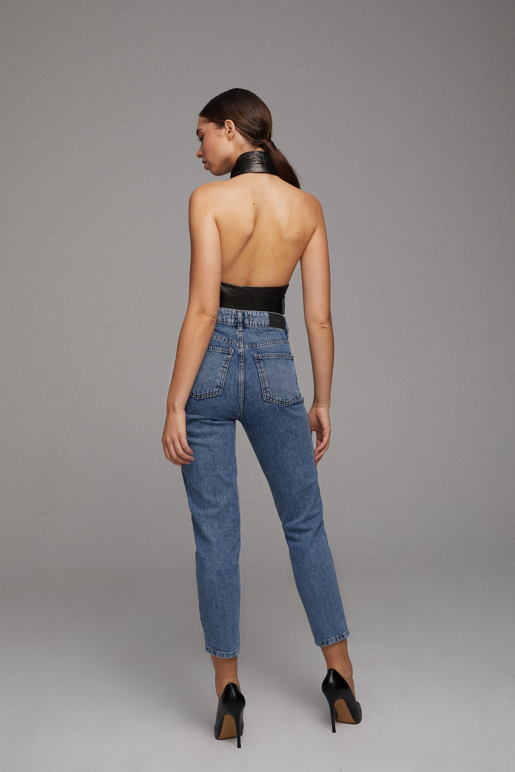 Tie-waist Leather Bustier – Black
