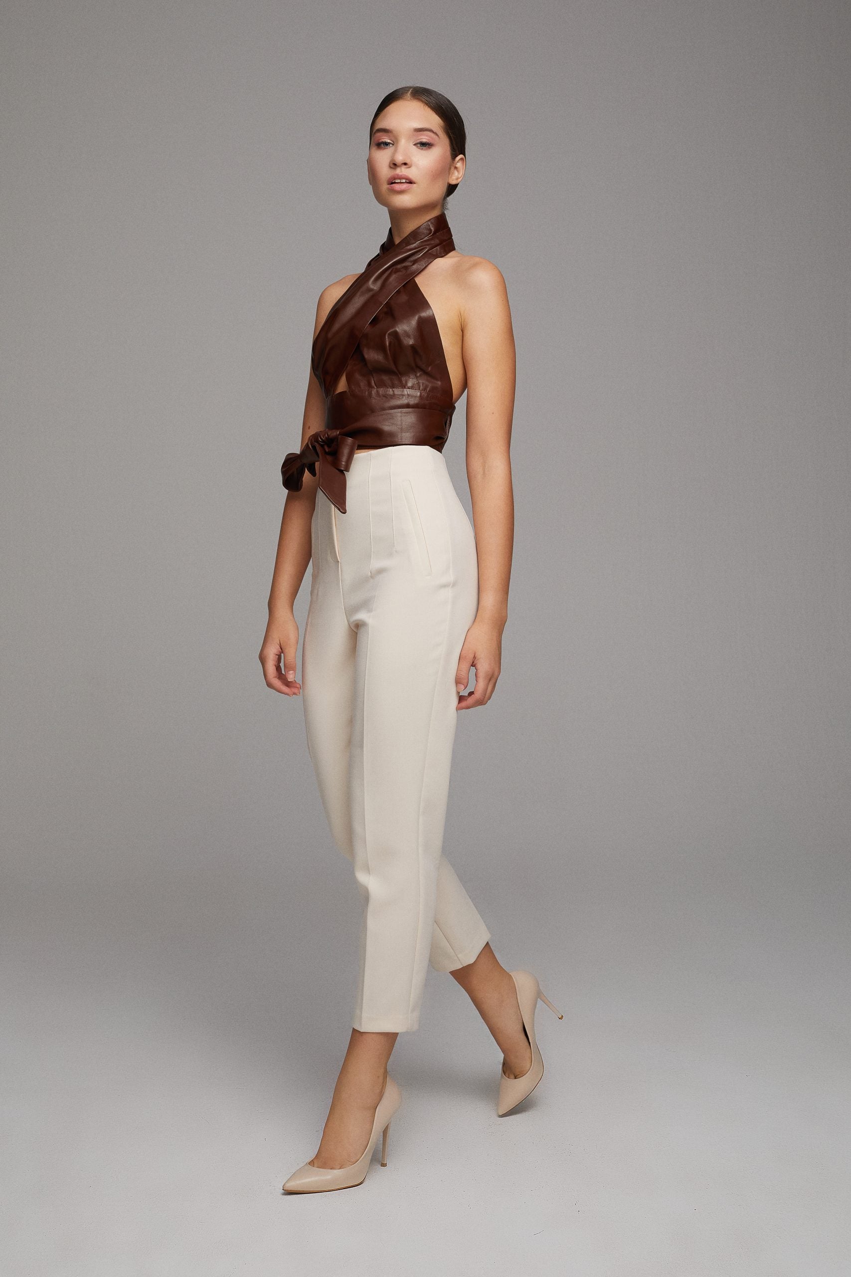 Tie-waist Leather Bustier – Brown